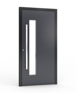 Ytterdörren levereras som standard med en exklusiv helaluminiumtröskel med integrerad köldbrygga. Den kombinerar mycket god värmeisolering med hög slitstyrka och är utvecklad för moderna, energieffektiva bostäder där kvalitet, funktion och design samverkar på premiumnivå.