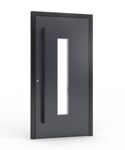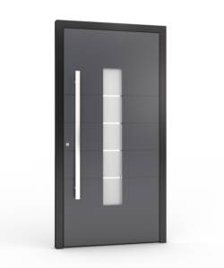 Ytterdörren levereras som standard med en exklusiv helaluminiumtröskel med integrerad köldbrygga. Den kombinerar mycket god värmeisolering med hög slitstyrka och är utvecklad för moderna, energieffektiva bostäder där kvalitet, funktion och design samverkar på premiumnivå.