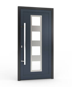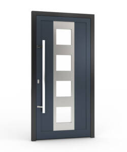 Ytterdörren levereras som standard med en exklusiv helaluminiumtröskel med integrerad köldbrygga. Den kombinerar mycket god värmeisolering med hög slitstyrka och är utvecklad för moderna, energieffektiva bostäder där kvalitet, funktion och design samverkar på premiumnivå.