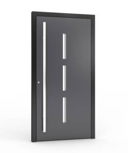 Ytterdörren levereras som standard med en exklusiv helaluminiumtröskel med integrerad köldbrygga. Den kombinerar mycket god värmeisolering med hög slitstyrka och är utvecklad för moderna, energieffektiva bostäder där kvalitet, funktion och design samverkar på premium­nivå.