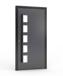 Ytterdörren levereras som standard med en exklusiv helaluminiumtröskel med integrerad köldbrygga. Den kombinerar mycket god värmeisolering med hög slitstyrka och är utvecklad för moderna, energieffektiva bostäder där kvalitet, funktion och design samverkar på premiumnivå.