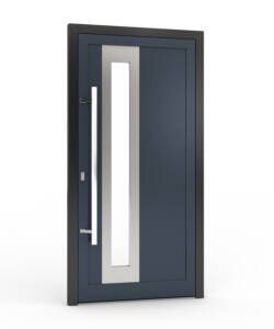 Ytterdörren levereras som standard med en exklusiv helaluminiumtröskel med integrerad köldbrygga. Den kombinerar mycket god värmeisolering med hög slitstyrka och är utvecklad för moderna, energieffektiva bostäder där kvalitet, funktion och design samverkar på premiumnivå.