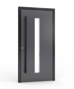 Ytterdörren levereras som standard med en exklusiv helaluminiumtröskel med integrerad köldbrygga. Den kombinerar mycket god värmeisolering med hög slitstyrka och är utvecklad för moderna, energieffektiva bostäder där kvalitet, funktion och design samverkar på premium­nivå.