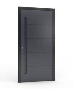 Ytterdörren levereras som standard med en exklusiv helaluminiumtröskel med integrerad köldbrygga. Den kombinerar mycket god värmeisolering med hög slitstyrka och är utvecklad för moderna, energieffektiva bostäder där kvalitet, funktion och design samverkar på premiumnivå.